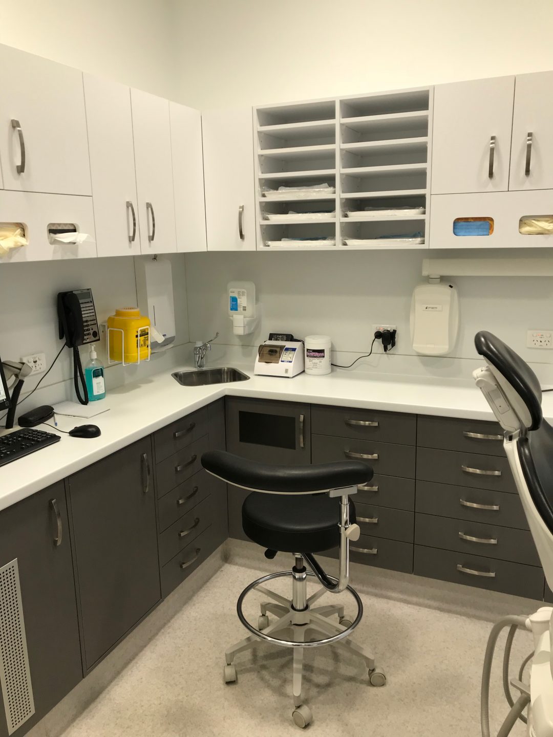 This practice is beautifully presented with a high level of equipment and cabinetry and is spacious and light.